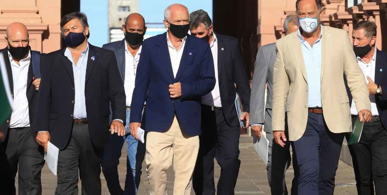 Por el sector agropecuario, participaron los titulares de Coninagro, Carlos Iannizzotto; de Federación Agraria Argentina, Carlos Achetoni; de Confederaciones Rurales Argentinas, Jorge Chemes; y de la Sociedad Rural Argentina, Daniel Pelegrina, acompañados por los vicepresidentes de cada entidad.