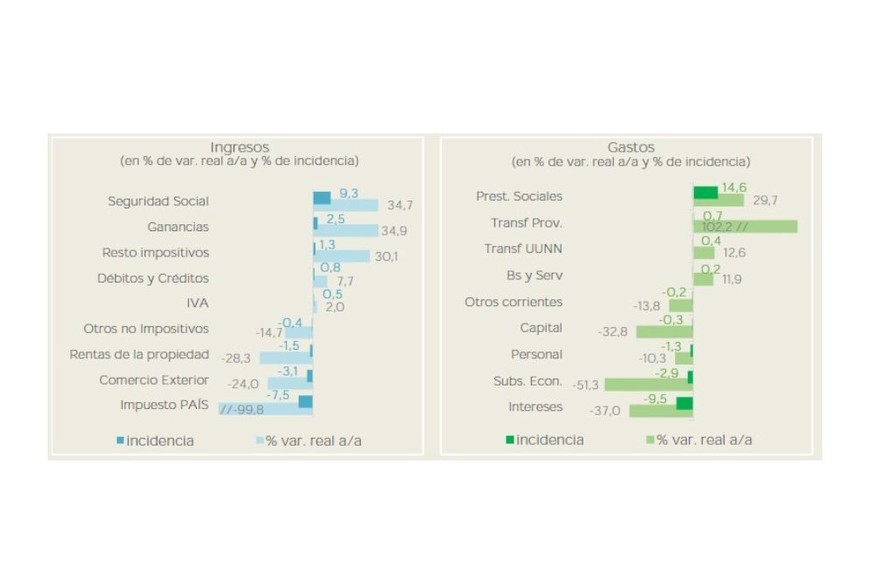 Al mismo tiempo, el Impuesto a las Ganancias mejoró su recaudación un 34,9% a/a (incidencia 2,5 p.p.), por las mayores retenciones a trabajadores en relación de dependencia.