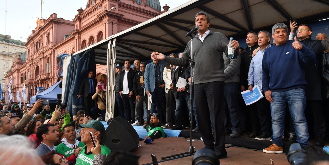El ministro-candidato juega a la promesa de reparto con plata del gobierno en déficit. Sergio Massa había planteado eliminar el impuesto sobre los sueldos para cuando sea “presidente”; Patricia Bullrich le replicó por qué no lo hace ahora que es ministro, tal como suele hacerlo por decreto. Y el ministro responde reunido con la CGT, con un inédito acto peronista que en lugar de ser frente a la Casa Rosada fue ante el ministerio. El anuncio es un decreto que regirá hasta diciembre más un proyecto de ley que “le tira la responsabilidad” al Congreso (la oposición no quiere cambios que afecten la caja del futuro gobierno), en un intento por deslindar culpas por la fuerte presión fiscal y el costo de bajar la recaudación cuando los recursos no alcanzan.
