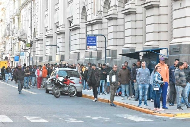 Largas filas en los bancos para cobrar jubilaciones y asistencia social