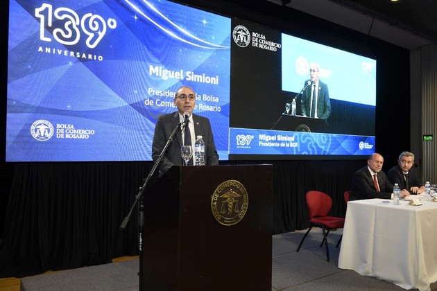 El presidente de la Bolsa de Comercio de Rosario, Miguel Simioni, planteó que “ante las encrucijadas” que vive el país, la generación de dirigentes del presente procuren “marcar un rumbo que sea recordado por su valentía, su visión y su capacidad de trabajar en conjunto”, como lo hicieron los fundadores de la entidad que preside y que cumplió 139 años.