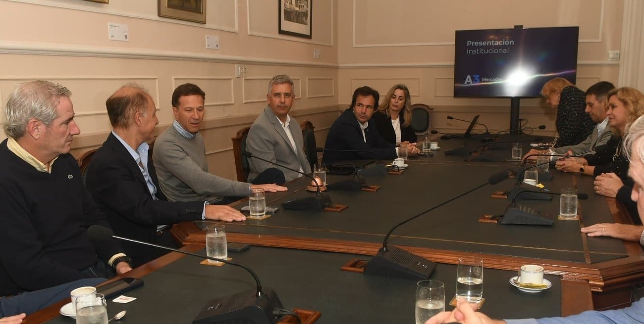 El presidente de la Bolsa de Comercio de Santa Fe, Martín Vigo Lamas, acompañado por integrantes de la Mesa Directiva de la entidad y de su gerente general Germán Dobler, recibieron en la sede de calle San Martín a directivos de A3 Mercados encabezados por su vicepresidente Andrés Ponte, quien estuvo acompañado por Adrián Isnardo y la responsable de Relaciones Institucionales Mariana Pellegrini, quienes hicieron una presentación de la empresa que empezó a funcionar el 1 de marzo de este año.