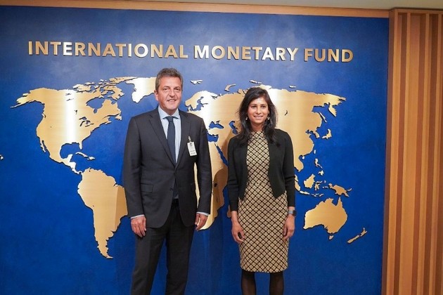 Sergio Massa junto a Gita Gopinath, primera subdirectora gerente del Fondo Monetario Internacional. Crédito: Ministerio de Economía