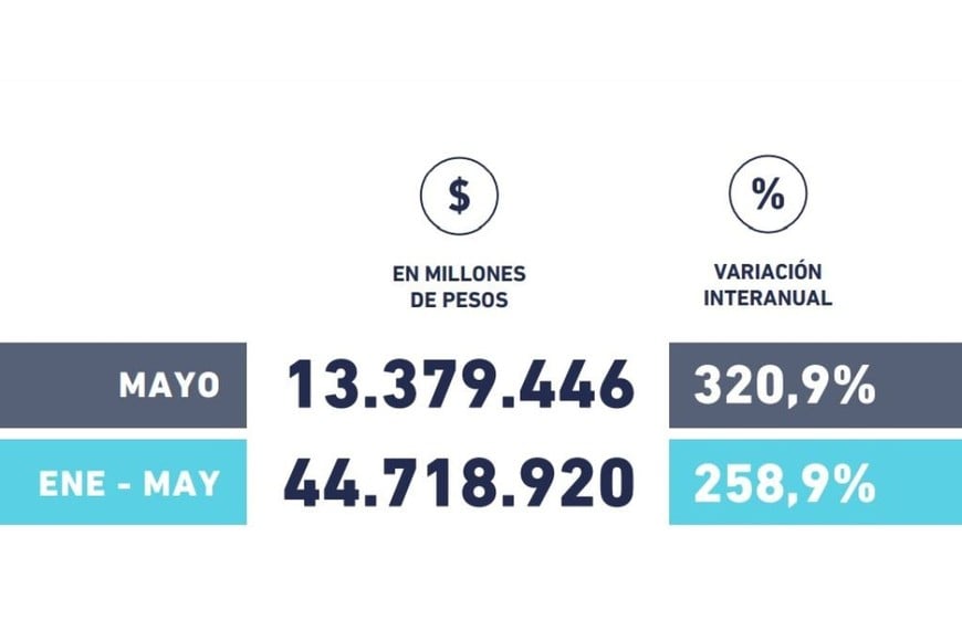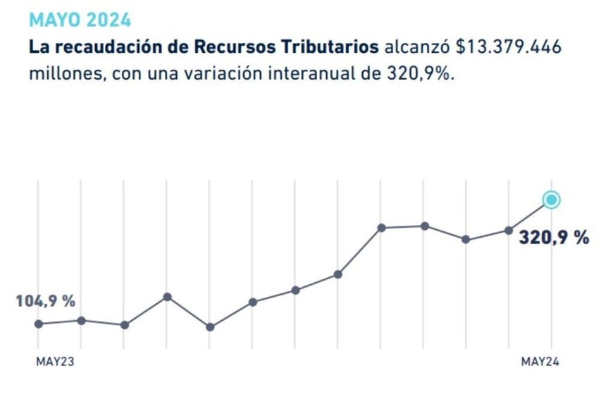 La recaudación de Recursos Tributarios alcanzó en el país $13.379.446 millones, con una variación interanual de 320,9% aunque sin descontar los efectos de la inflación en la misma comparación del período, que de acuerdo a las estimaciones de Orlando Ferreres fue del 279,7%.