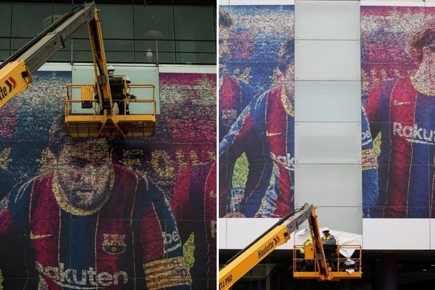 Durante la jornada de este martes, el club Barcelona comenzó a retirar las imágenes donde aparece Messi en las inmediaciones del estadio Camp Nou.