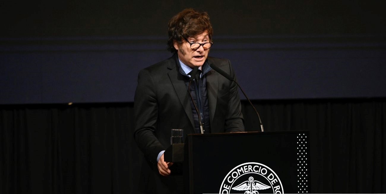 Javier MIlei explicó anoche en el salón Manuel Belgrano de la Bolsa de Comercio de Rosario, su visión de la marcha de la economía nacional. Lo hizo en el marco del 140 aniversario de la entidad, ante la presencia del presidente de la institución, Miguel Simioni, del intendente Pablo Javkin y del gobernador Maximiliano Pullaro, entre otras autoridades y empresarios de la región.