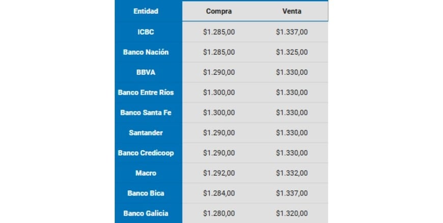 El miércoles cerró con subas y caídas leves en el valor del dólar oficial dependiendo del banco y aumentó de $10 en el Blue. En el Nación se sostuvo en $1.330 para la venta y $1.290 para la compra, cifras en las que abre este jueves 14 de agosto.