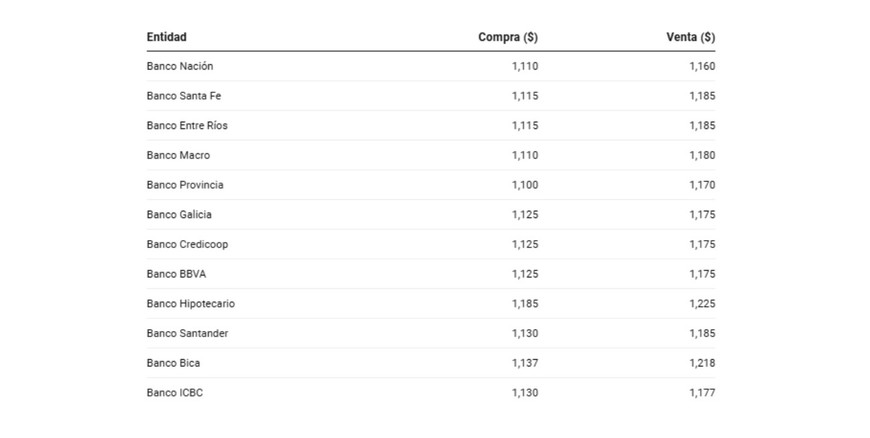 En lo que será la primera semana completa de mercado tras los cambios oficiales en el cepo al dólar en Argentina, el tipo de cambio minorista abre este lunes a $1160 en el Banco Nación y a $1250 en el mercado blue, cifras en las que cerró el pasado miércoles 16 de abril.