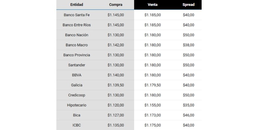 El dólar “blue” se ofrecerá a $ 1.180 y $ 1.200 para ambas puntas. En tanto, el MEP lo hará en $ 1.174 y el Contado con Liquidación en $ 1.157.