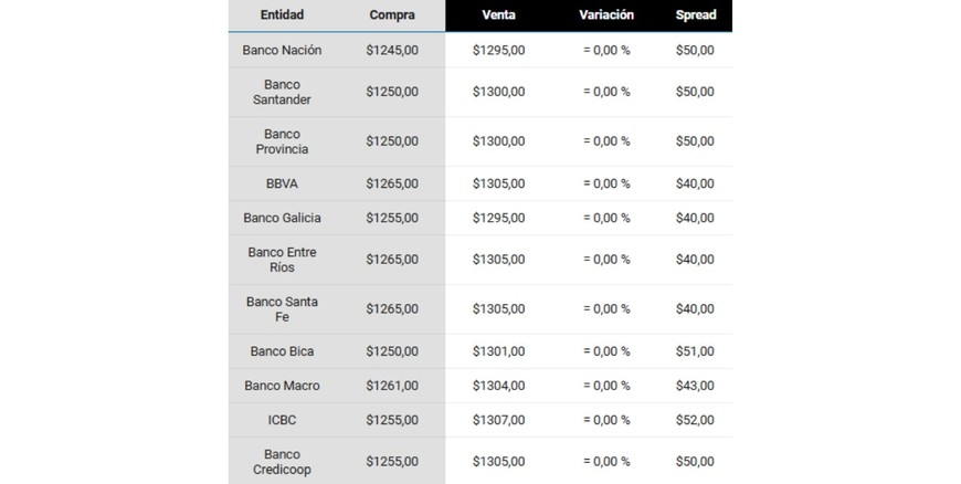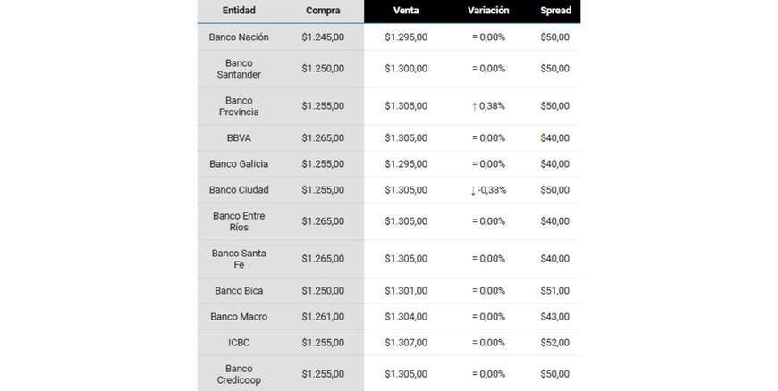 El oficial de Banco Nación arranca la semana en $1.245 para la compra, $1.295 para la venta.