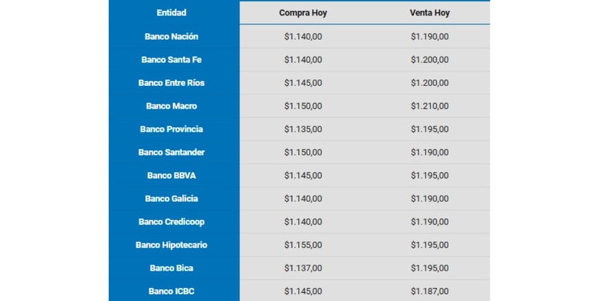 Lunes 05.0509:40 La cotización de cada banco al cierre del miércoles pasado