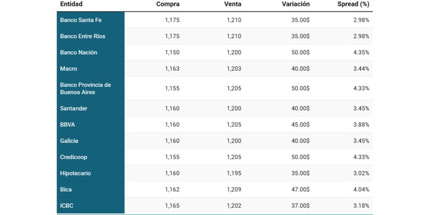 Con pequeñas modificaciones este martes, el valor del dólar oficial cambió levemente en algunos bancos. En el Nación bajó a $1.200 para la venta y $1.150 para la compra, cifras en las que abre este miércoles 11 de junio.