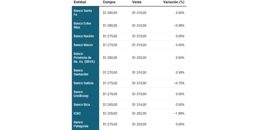 El martes cerró con cambios diversos en el valor del dólar oficial en la mayoría de los bancos y estabilización en el Blue. En el Nación se sostuvo a $1.315 para la venta y $1.275 para la compra, cifras en las que abre este miércoles 20 de agosto.
