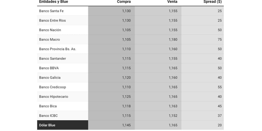 El jueves cerró con una cotización del dólar oficial que se mantuvo en la mayoría de los bancos. En el Nación bajó a $1.105 para la venta y $1.155 para la compra, cifras en las que abre este viernes 23 de mayo.