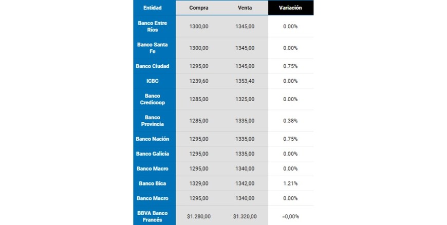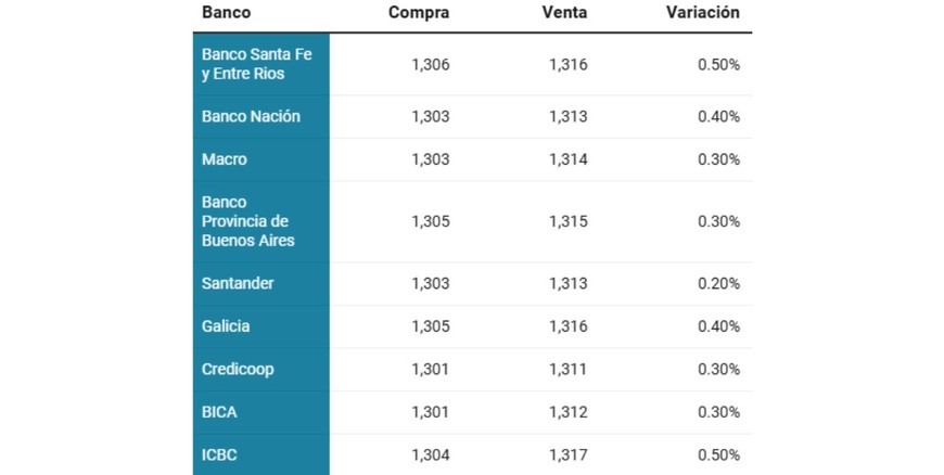 El jueves cerró con sostenimientos en el valor del dólar oficial en la mayoría de los bancos, al igual que en el Blue. En el Nación se sostuvo a $1.313 para la venta y $1.303 para la compra, cifras en las que abre este viernes 22 de agosto.