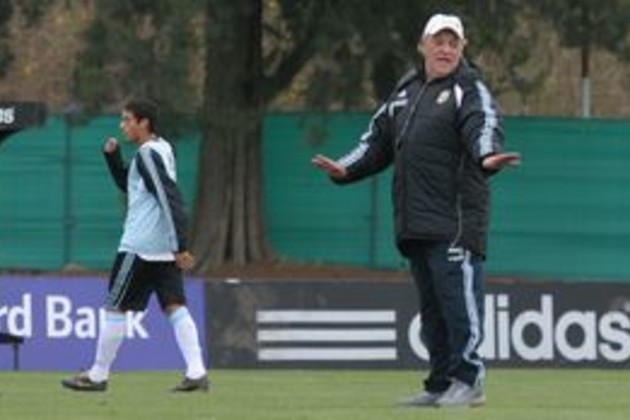 En el ensayo a puertas cerradas, que comenzó a las 15, el "Coco" paró a Roberto Abbondanzieri; Nicolás Burdisso, Martín Demichelis y Gabriel Heinze; Javier Zanetti, Juan Sebastián Verón, Javier Mascherano y Maximiliano Rodríguez; Juan Román Riquelme; Sergio Agüero y Lionel Messi.