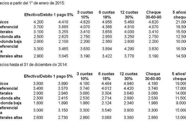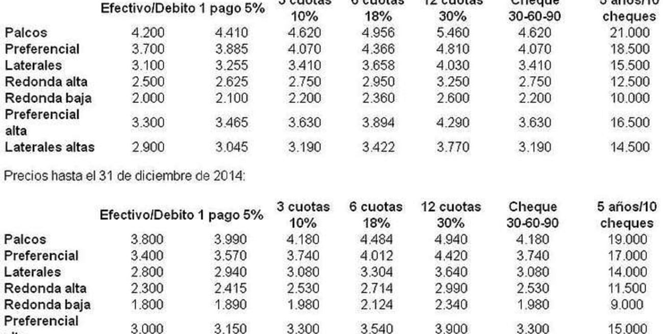 Este lunes comienza la venta y renovación de palcos y plateas para la temporada 2015 de Primera División. Además, existirá la posibilidad de adquirir ubicaciones por hasta 5 años. La compra durante el mes de diciembre del presente año tendrá un costo inferior, aumentando el mismo a partir del 1° de enero de 2015.