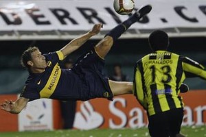 Entonces salió a presionar a los boquenses, a atosigarlos en la mitad del campo, a buscar una ventaja temprana que lo mantuviera en carrera, pero José Granados derribó en el área venezolana al goleador Martín Palermo, que a los 13 minutos abrió el marcador de penal.