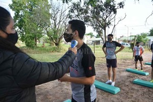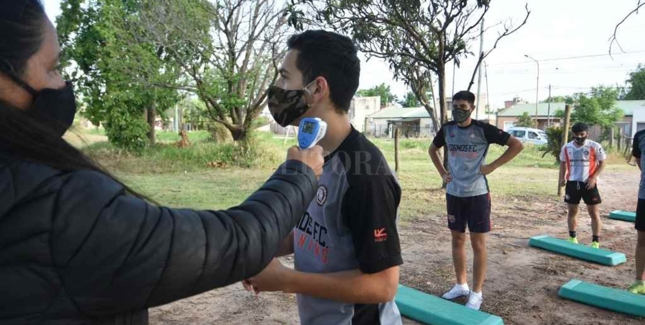 Con la presencia de las autoridades del club que prepararon el ingreso, desde el comienzo, con alcohol en mano y con el medidor de temperatura laser infrarrojo con display lcd, la nueva y costosa adquisición. Cada jugador hizo su ingreso al predio donde, una vez finalizado el control obligatorio, lo esperaba una silla para tomar asiento y aguardar la orden de los profesores a cargo de la actividad.
