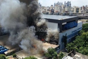 En el lugar están trabajando dos dotaciones de bomberos de la Policía Federal, a las que se sumaron al menos una de Bomberos Voluntarios, y 12 ambulancias del Same.