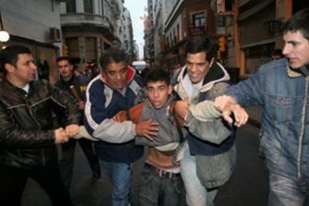 Un camarógrafo de Crónica TV sufrió un corte sobre la ceja izquierda, aparentemente al recibir el golpe de una piedra.