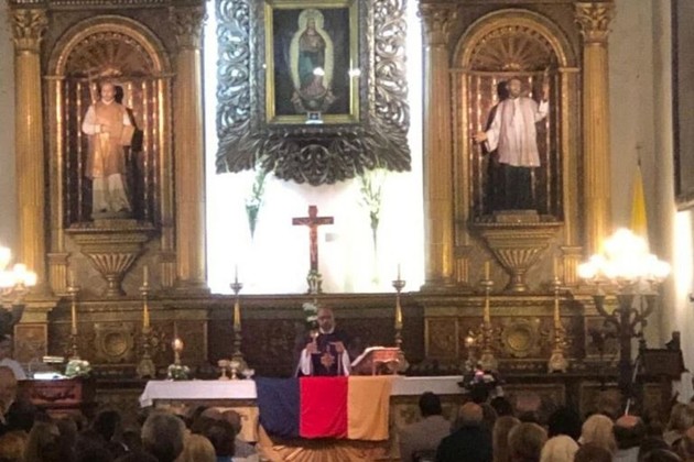 Luego de la obtención de su primer título en la Liga Santafesina, este domingo en la misa vespertina de la parroquia de Inmaculada, estuvo presente la bandera tricolor de Ateneo.