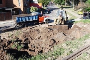 Así, una máquina retroexcavadora, camiones y operarios están trabajando en el lugar, donde “se va a continuar con la obra y en los próximos días va a estar abierto este paso para poder continuar por calle 9 de Julio hacia el Norte de la ciudad”, detalló el secretario de Gobierno del Municipio, José Corral.