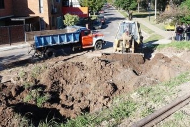 Personal del Gobierno de la ciudad comenzó a realizar esta mañana una serie de trabajos tendientes a derribar el terraplén ferroviario que obstruye el tránsito en calle 9 de Julio a la altura del 5.300, en barrio Escalante.