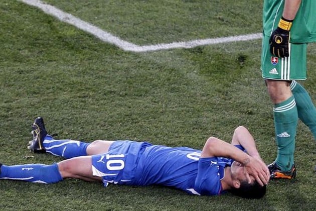 El seleccionado italiano de fútbol, último campeón ecuménico, cayó hoy ante Eslovaquia por 3-2 en el cierre del Grupo F y quedó eliminado del Mundial de Sudáfrica, tras sumar sólo dos puntos al cabo de los tres encuentros de la primera fase.