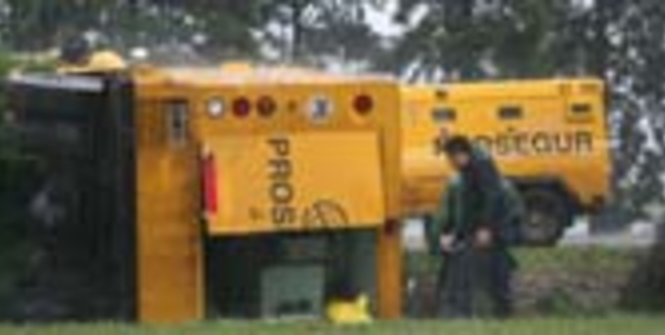 En Sauce Viejo tres hombres debieron ser rescatados por policías, bomberos y personal de emergencias cuando esta mañana -bajo intensa lluvia-, el camión de caudales de la empresa Prosegur en el que viajaban con dirección a Rosario salió de la cinta asfáltica y dio varios tumbos en el cantero central de la autopista Santa Fe-Rosario, a la altura del kilómetro 141, cercano del puesto de peaje de Santo Tomé.