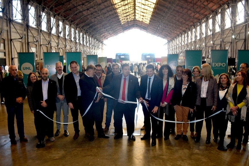 Junto al rector Enrique Mammarella inauguraron la Expocarreras 2023 decanos y decanas de todas las facultades de la UNL. Foto: Flavio Raina.