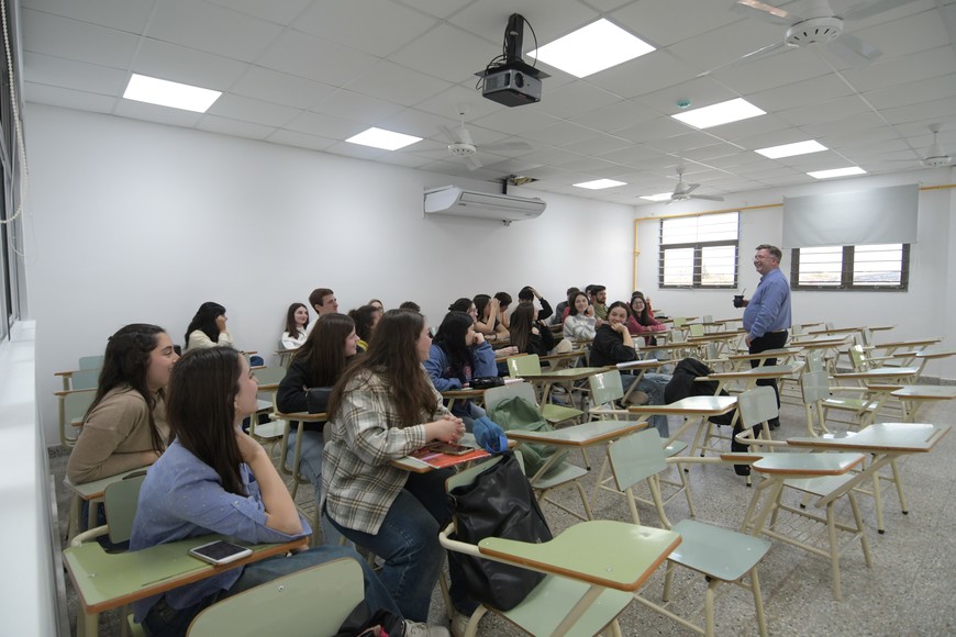 Clase en la Universidad Católica de Santa Fe. Un ambiente donde además de lo académico, hay charla y mate entre profesores y alumnos. Crédito: Manuel Fabatía.