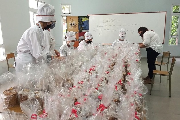 La acción benéfica en conjunto tuvo como objetivo equipar un gimnasio social, en Barrio Alfonso de esta capital. En tal sentido, el Instituto "Sol" colaboró elaborando 500 pan dulces en su aula cocina. "Nos alegra volver al aula con los estudiantes de la carrera de gastronomía, para hacer este aporte solidario." sostuvo Rivero, "bajo un protocolo sanitario muy estricto y específico, tomamos el desafío de elaborar esta gran cantidad de pan dulces en muy poco tiempo. Nos pone felices terminar el año haciendo este aporte a la comunidad." agregó.