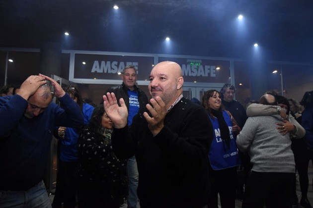 Rodrigo Alonso festejó el resultado que lo tendrá como secretario general de Amsafe Provincial hasta 2028. Créditos: Gentileza