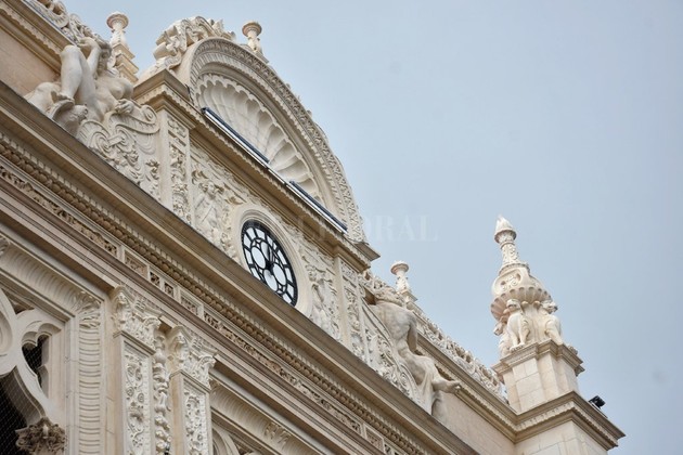 Ivanna Carol da los toques finales al revoque del pináculo que remata la fachada del Rectorado de la Universidad Nacional del Litoral. Desde ahí, a 16.80 metros del suelo, puede contemplar el entorno del bulevar Pellegrini, las torres de viviendas que se elevan sobre las casas bajas, los comercios y los bares. El desarrollo de la zona respecto de la primera mitad del siglo XX, cuando se edificaron el Rectorado y la Facultad de Ciencias Jurídicas y Sociales, no modificó la sensación de estar frente a un edificio de magnitud y características especiales. “A veces la gente pasa caminando y se queda observando, porque es algo inusual encontrarse con una construcción como esta”, contaba Ivana unos meses atrás, cuando más de 2.000 metros de andamios cubrían por completo la fachada sur de la manzana.
