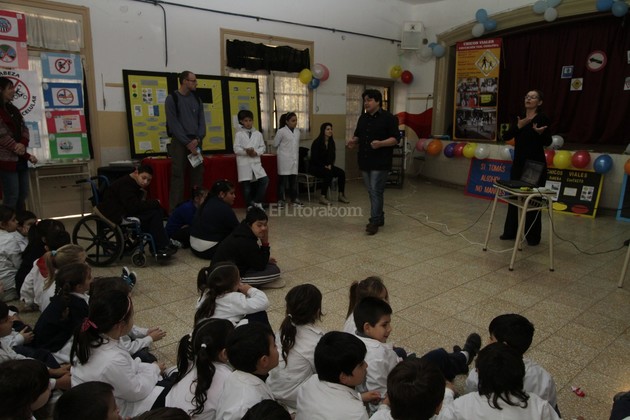 Al principio, una obra teatral. A un costado, pósters y carteles con imágenes y dibujos. Todo orientado a generar conciencia vial en niños de 1° y 2° grado. “De eso se trata el Proyecto Chicos Viales, que busca generar conciencia sobre la seguridad vial desde el nivel primario. Ahora trabajamos con la idea de inclusión: por eso participan los chicos de la Moreno, pero también de las especiales 2083 y 2012”, contó a El Litoral Pablo Crippa, director de ese proyecto.