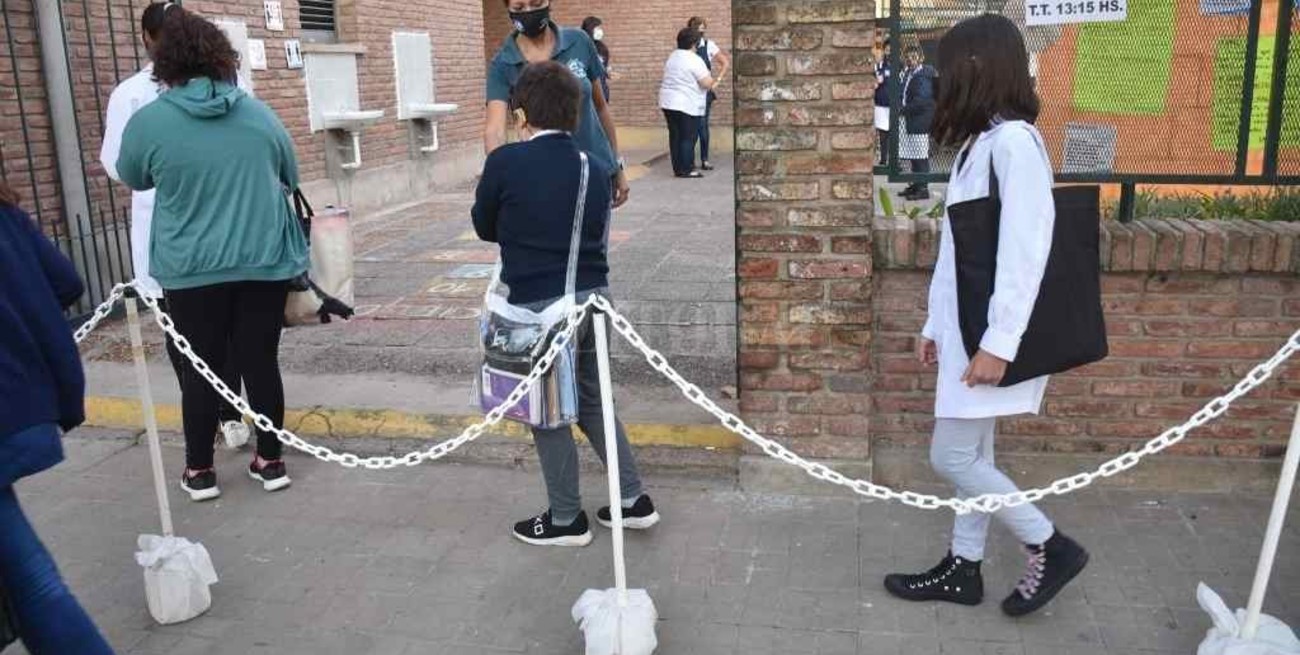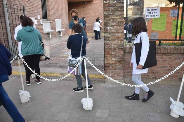 Es viernes a la mañana de un lindo otoño de sol en la ciudad y se aproxima el horario de entrada. Calle Las Heras, a la altura del 6900, se va poblando de vehículos: hay quienes llegan en el asiento de atrás de una bicicleta o de una moto, en auto, en transporte. Aumenta el ruido a medida que se acercan las 8, pero es mucho menos que el que habrá acompañado la entrada a clases en la vida prepandemia cuando todos los cursos ingresaban a la misma hora. Y a la vez es el cien por ciento más que en 2020 cuando las escuelas, como todo, debieron cerrar sus puertas.