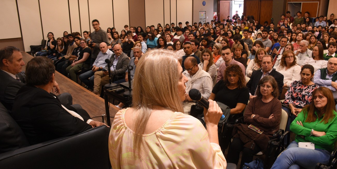 La actividad tuvo lugar en el auditorio de la Facultad de Ciencias Económicas y contó con una sala colmada de público preocupado por el funcionamiento de la universidad ante un contexto de ajuste.
