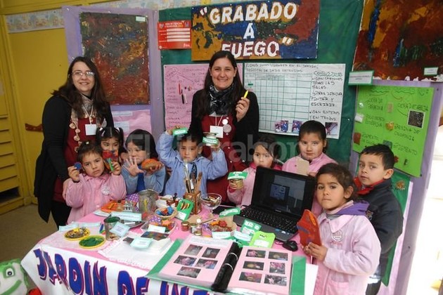 Un grupito de niños de 5 años del Jardín de Infantes Nº 210 “Profesor Enrique Muttis” explicaba -con ayudita de la maestra- cómo fabrican sus propios crayones con parafina, el “polvito secreto” que es la estearina (para endurecer la parafina) y pigmentos de colores. “Los usamos para pintar, dibujar y escribir”, respondían los chiquitos al unísono, felices de poder mostrar su proyecto “Grabado a fuego”.