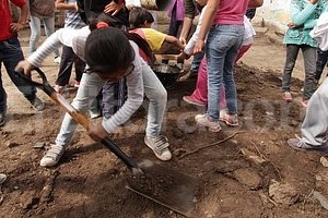 “Hola, me llamo Luna y quiero decir que es muy difícil hacer un horno de barro, nos va a tomar unos días”, dijo con ternura e ingenuidad una de las niñas ocupadas en la tarea.