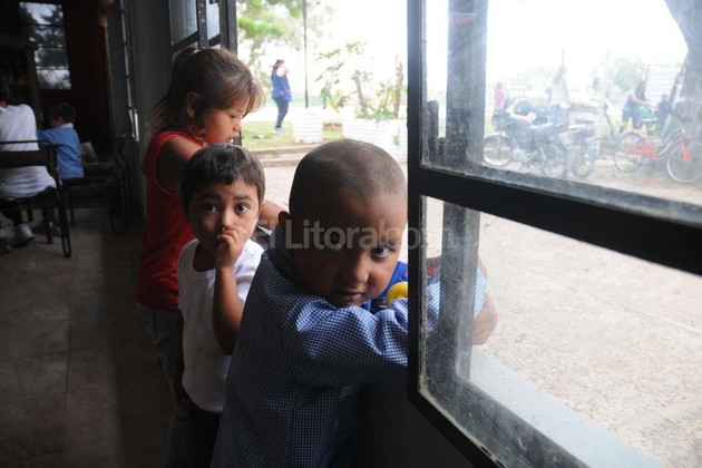 Hay acceso a cocina, baño, dan copa de leche y la escuela N° 884 les acerca la comida para el comedor. Pero el problema es que no tienen luz. Según supo este medio, el Ministerio de Educación les mandó un generador, pero es muy chico y no abastece más que los focos: la heladera no se puede prender. Era la hora de recreo. Los más pequeñitos se quedaron con sus docentes en las aulas. Los más grandes salieron corriendo a buscar la pelota.