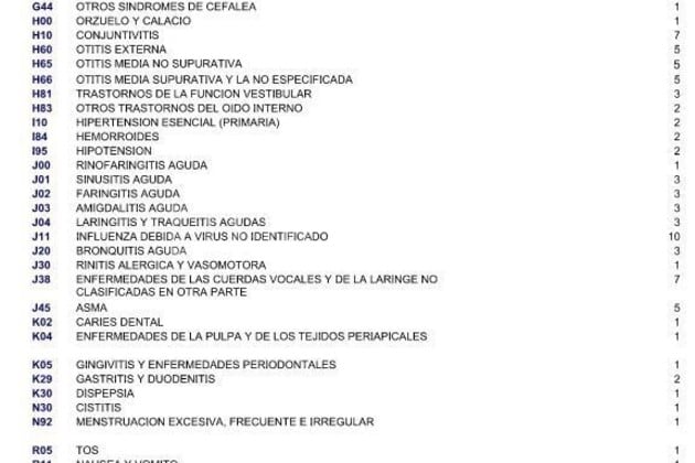 La tabla no considera enfermedades crónicas o graves largas sino solamente los padecimientos de corta duración. De esta manera, estipula, por ejemplo, 3 días de ausencia para faringitis, sinusitis o bronquitis aguda, 5 para asma u otitis, 7 para conjuntivitis, 2 para hipertensión y sólo un día para cistitis, acidez o caries, entre otras. El mayor número de días (10) lo reserva para “influenza (gripe) debida a virus no identificado”.