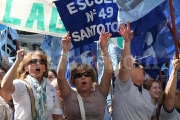 La paritaria docente se complicó porque el gobierno se mantiene intransigente en su decisión de descontar a los maestros los días de paro. Así lo reconoció este lunes el propio ministro de Gobierno, Rubén Galassi: “La traba que se está planteando ahora tiene que ver con el no pago de los días no trabajados, que es una decisión tomada”, dijo, aunque se ocupó de aclarar que “a los docentes que trabajen se les va a pagar el día”.
