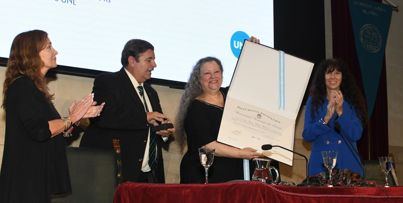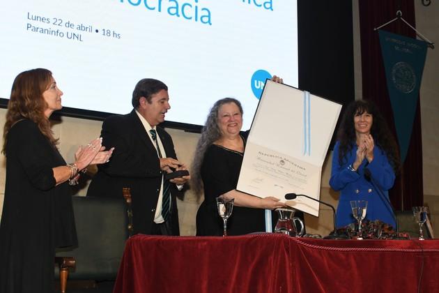 Fue reconocida como Doctora Honoris Causa por la Universidad de Córdoba y la Universitat Jaume Io de Valencia (España). Y desde el 22 de abril, en la UNL.