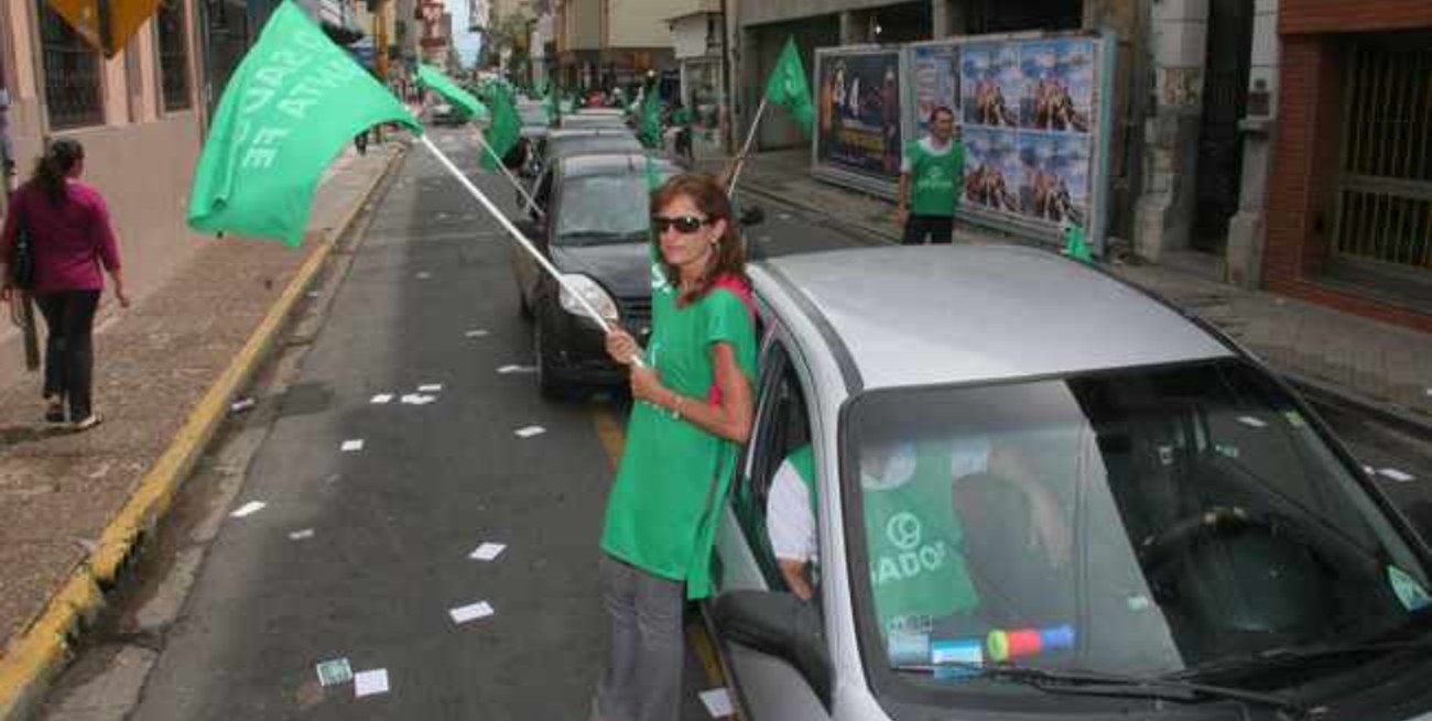 La caravana tenía una extensión de dos cuadras y era encabezada por una camioneta con bafles desde donde hablaban los dirigentes y se difundía música. De los vehículos, flameaban las típicas banderas verdes del Sadop y el bullicio se completaba con bombas de estruendo y una batucada.