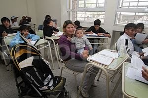 “La única manera que tengo de seguir estudiando es traer a mi bebé a clase”, confiesa Silvina Cardozo, mientras mece al inquieto Junior, de apenas 8 meses. Sobre su pupitre del curso de 2do año, hay una mamadera con leche. Silvina toma apuntes y ruega que el pequeño se duerma otro ratito para poder terminar de copiar los ejercicios de matemática.
