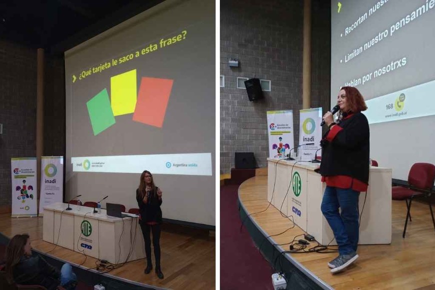 Gentileza Las asesoras técnicas de la campaña educativa del INADI, Maura Rivero (izq.) y Andrea Majul (der.), estuvieron a cargo de los talleres de capacitación contra la violencia y el acoso en las escuelas.