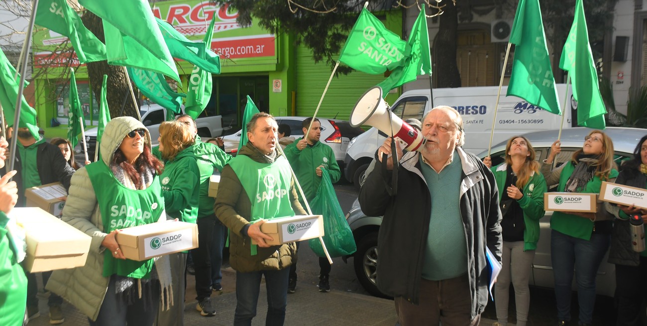 En la Dirección Regional de Santa Fe del Ministerio de Trabajo y Seguridad Social, el Sindicato Argentino de Docentes Particulares (Sadop) Santa Fe realizó este viernes por la mañana la presentación de los reclamos para que las patronales de los distintos colegios les devuelvan los descuentos realizados a sus docentes por el paro del pasado 8 de mayo. Los petitorios fueron firmados por educadores de más de 50 entidades patronales del centro-norte de la provincia.