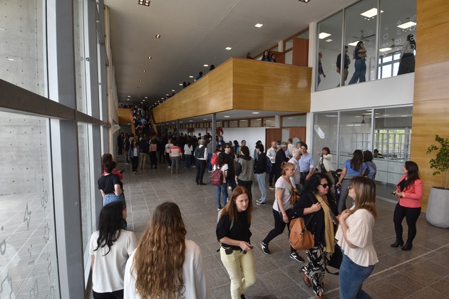 Luego, hay otro sector semipúblico. “Son los halls y el Salón de Usos Múltiples, que tiene capacidad para 300 personas; y tiene una pastilla de servicio lateral donde funciona una cocina centralizada y un núcleo de sanitarios que nos va a permitir hacer actividades de todo tipo: culturales, deportivas, científicas, en forma independiente de lo que es el aulario”, detalló.