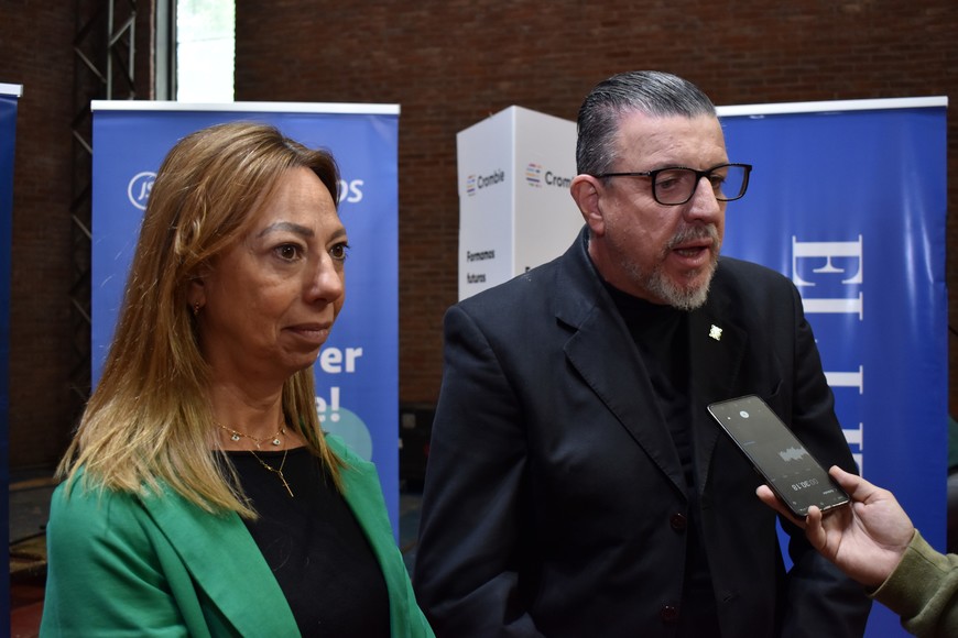 El decano de la UTN Santa Fe, Eduardo Donnet, junto a la directora del departamento de Ingeniería en Sistemas de Información, Milagros Gutiérrez. Crédito: Malena Rodríguez.
